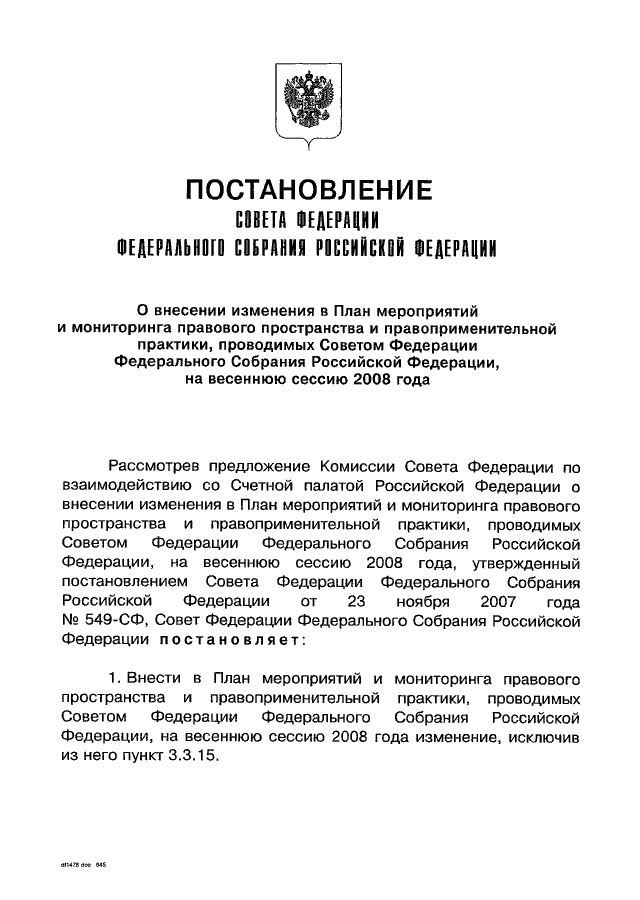 "О ВНЕСЕНИИ ИЗМЕНЕНИЯ В ПЛАН МЕРОПРИЯТИЙ И МОНИТОРИНГА ПРАВОВОГО