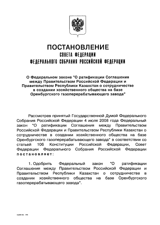 ПОСТАНОВЛЕНИЕ СФ ФС РФ от 11.07.2008 N 254-СФ