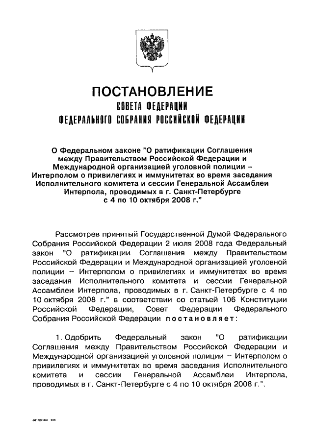 АССАМБЛЕИ ИНТЕРПОЛА, ПРОВОДИМЫХ В Г. САНКТ-ПЕТЕРБУРГЕ С 4 ПО 10