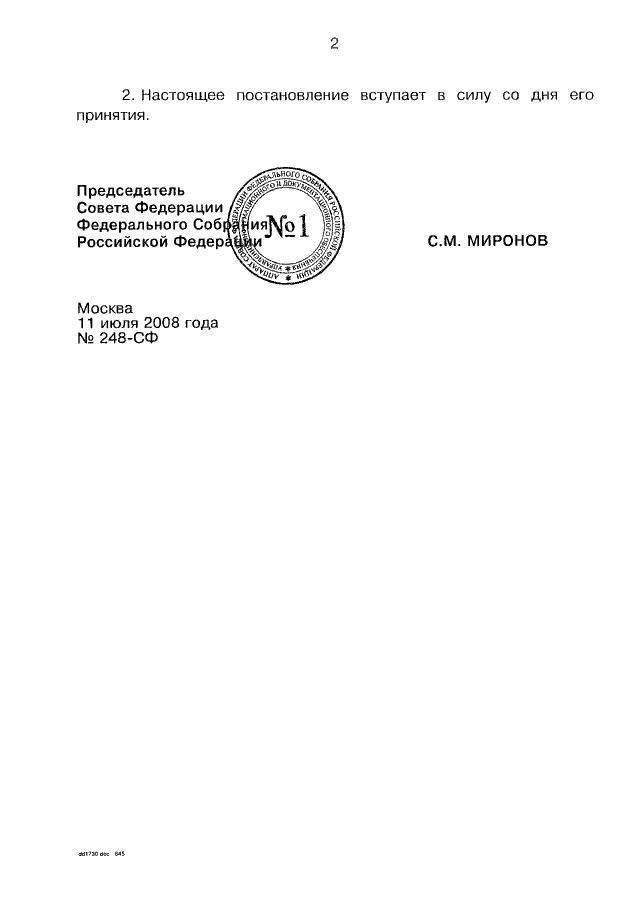 ПОСТАНОВЛЕНИЕ СФ ФС РФ от 11.07.2008 N 248-СФ