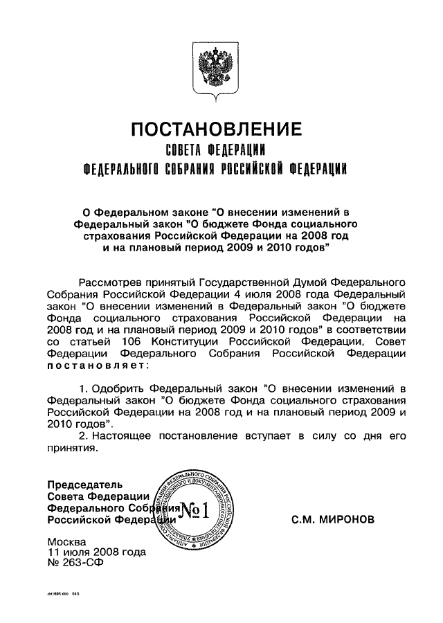 ПОСТАНОВЛЕНИЕ СФ ФС РФ от 11.07.2008 N 263-СФ