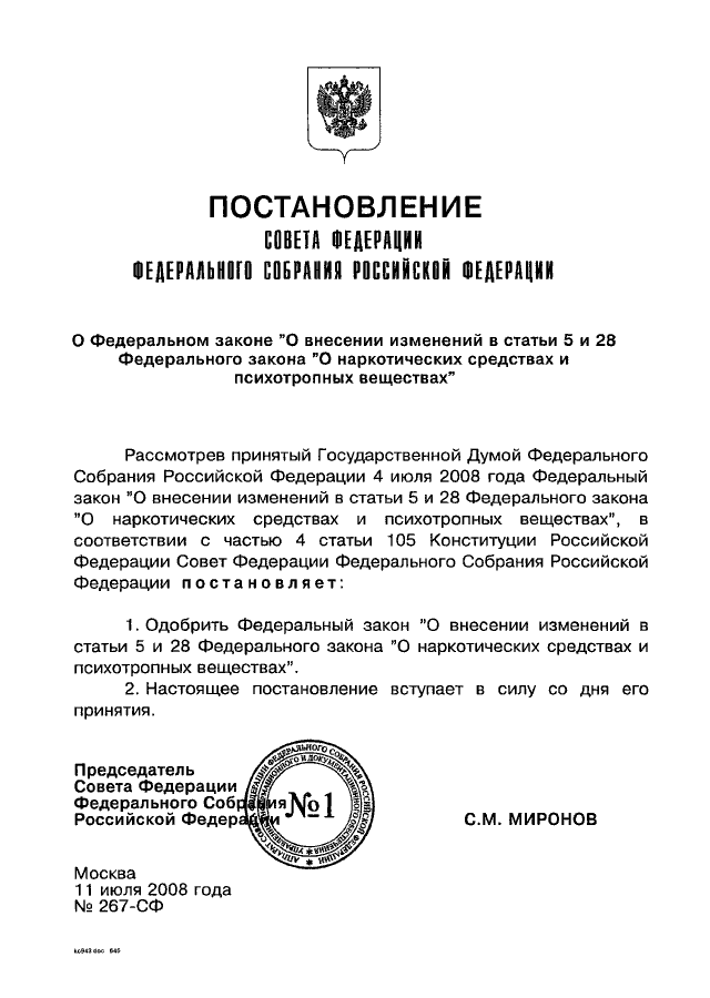 ПОСТАНОВЛЕНИЕ СФ ФС РФ от 11.07.2008 N 267-СФ