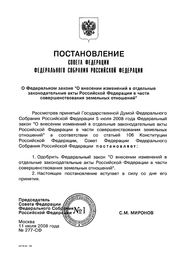 ПОСТАНОВЛЕНИЕ СФ ФС РФ от 11.07.2008 N 277-СФ