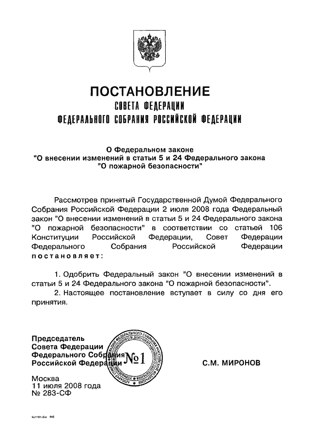 ПОСТАНОВЛЕНИЕ СФ ФС РФ от 11.07.2008 N 283-СФ