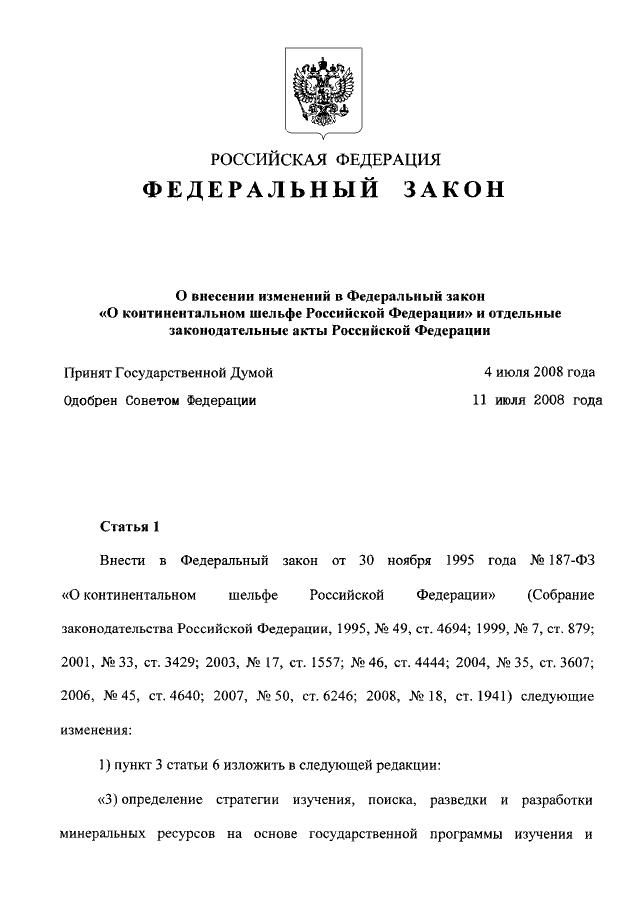 "О ВНЕСЕНИИ ИЗМЕНЕНИЙ В ФЕДЕРАЛЬНЫЙ ЗАКОН "О КОНТИНЕНТАЛЬНОМ ШЕЛЬФЕ РОССИЙСКОЙ ФЕДЕРАЦИИ" И ОТДЕЛЬНЫЕ ЗАКОНОДАТЕЛЬНЫЕ АКТЫ РОССИЙСКОЙ ФЕДЕРАЦИИ"