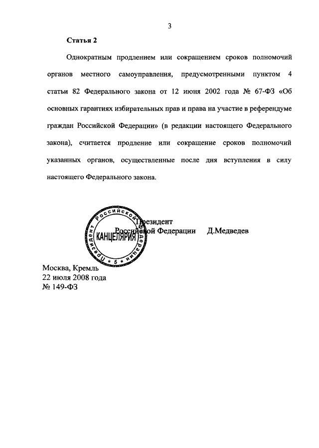 ФЕДЕРАЛЬНЫЙ ЗАКОН от 22.07.2008 N 149-ФЗ