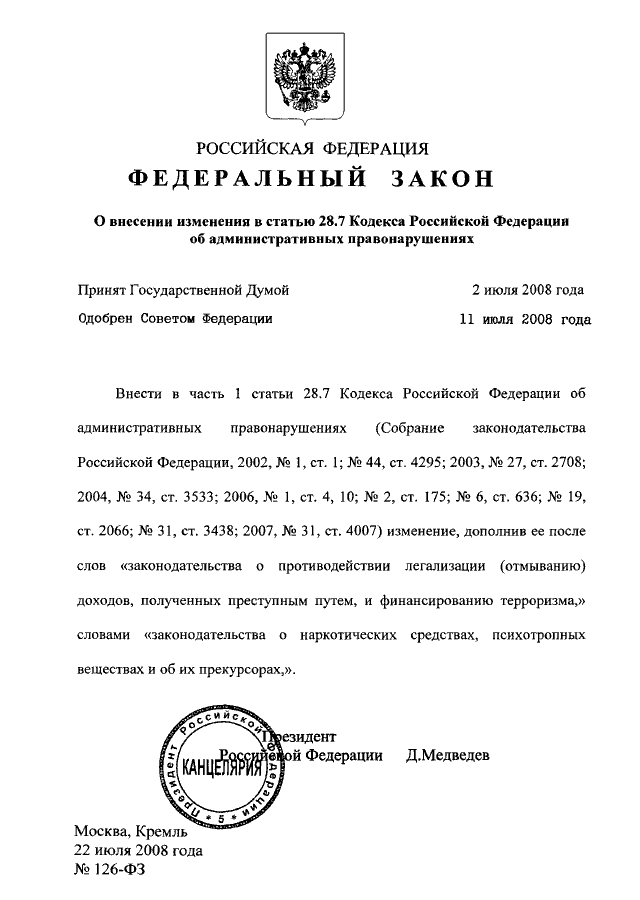 "О ВНЕСЕНИИ ИЗМЕНЕНИЯ В СТАТЬЮ 28.7 КОДЕКСА РОССИЙСКОЙ ФЕДЕРАЦИИ ОБ АДМИНИСТРАТИВНЫХ ПРАВОНАРУШЕНИЯХ"