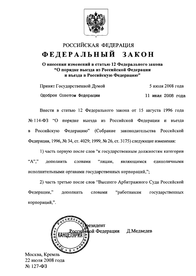 ФЕДЕРАЛЬНЫЙ ЗАКОН от 22.07.2008 N 127-ФЗ