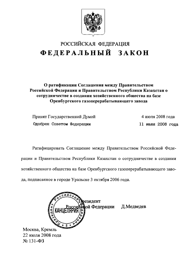 ФЕДЕРАЛЬНЫЙ ЗАКОН от 22.07.2008 N 131-ФЗ