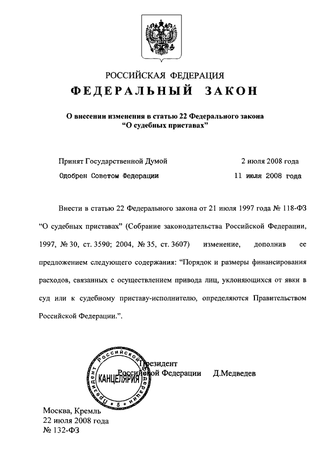 ФЕДЕРАЛЬНЫЙ ЗАКОН от 22.07.2008 N 132-ФЗ