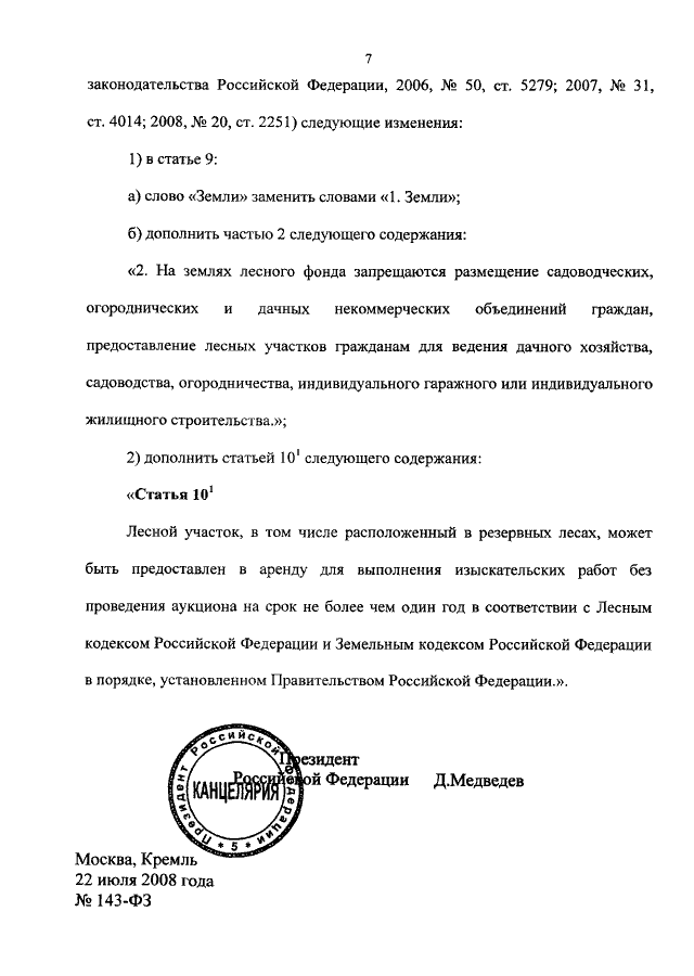 ФЕДЕРАЛЬНЫЙ ЗАКОН от 22.07.2008 N 143-ФЗ