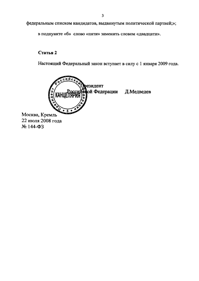 ФЕДЕРАЛЬНЫЙ ЗАКОН от 22.07.2008 N 144-ФЗ