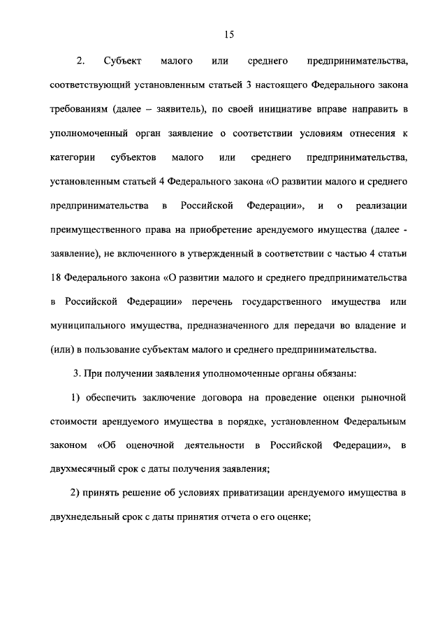 "ОБ ОСОБЕННОСТЯХ ОТЧУЖДЕНИЯ НЕДВИЖИМОГО ИМУЩЕСТВА, НАХОДЯЩЕГОСЯ В ГОСУДАРСТВЕННОЙ СОБСТВЕННОСТИ СУБЪЕКТОВ РОССИЙСКОЙ ФЕДЕРАЦИИ ИЛИ В МУНИЦИПАЛЬНОЙ СОБСТВЕННОСТИ И АРЕНДУЕМОГО СУБЪЕКТАМИ МАЛОГО И СРЕДНЕГО ПРЕДПРИНИМАТЕЛЬСТВА, И О ВНЕСЕНИИ ИЗМЕНЕНИЙ В ОТДЕЛЬНЫЕ ЗАКОНОДАТЕЛЬНЫЕ АКТЫ РОССИЙСКОЙ ФЕДЕРАЦИИ"