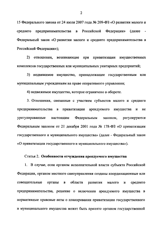 "ОБ ОСОБЕННОСТЯХ ОТЧУЖДЕНИЯ НЕДВИЖИМОГО ИМУЩЕСТВА, НАХОДЯЩЕГОСЯ В ГОСУДАРСТВЕННОЙ СОБСТВЕННОСТИ СУБЪЕКТОВ РОССИЙСКОЙ ФЕДЕРАЦИИ ИЛИ В МУНИЦИПАЛЬНОЙ СОБСТВЕННОСТИ И АРЕНДУЕМОГО СУБЪЕКТАМИ МАЛОГО И СРЕДНЕГО ПРЕДПРИНИМАТЕЛЬСТВА, И О ВНЕСЕНИИ ИЗМЕНЕНИЙ В ОТДЕЛЬНЫЕ ЗАКОНОДАТЕЛЬНЫЕ АКТЫ РОССИЙСКОЙ ФЕДЕРАЦИИ"