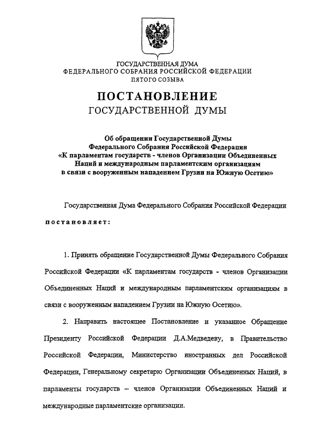 "ОБ ОБРАЩЕНИИ ГОСУДАРСТВЕННОЙ ДУМЫ ФЕДЕРАЛЬНОГО СОБРАНИЯ
