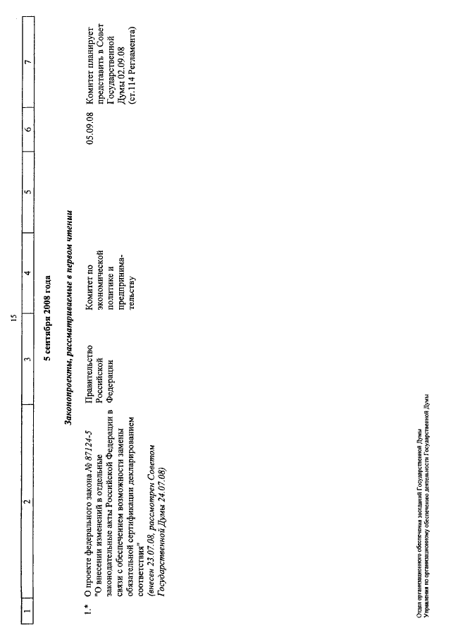 "О КАЛЕНДАРЕ РАССМОТРЕНИЯ ВОПРОСОВ ГОСУДАРСТВЕННОЙ ДУМОЙ С 25 АВГУСТА ПО 19 СЕНТЯБРЯ 2008 ГОДА"