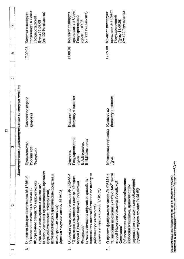 "О КАЛЕНДАРЕ РАССМОТРЕНИЯ ВОПРОСОВ ГОСУДАРСТВЕННОЙ ДУМОЙ С 25 АВГУСТА ПО 19 СЕНТЯБРЯ 2008 ГОДА"