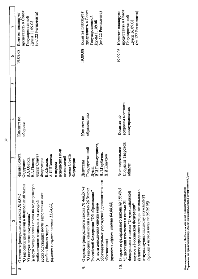 "О КАЛЕНДАРЕ РАССМОТРЕНИЯ ВОПРОСОВ ГОСУДАРСТВЕННОЙ ДУМОЙ С 25 АВГУСТА ПО 19 СЕНТЯБРЯ 2008 ГОДА"
