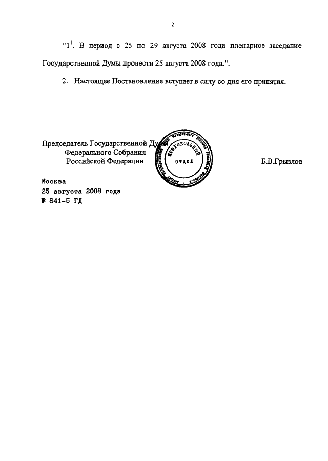 ПОСТАНОВЛЕНИЕ ГД ФС РФ от 25.08.2008 N 841-5 ГД