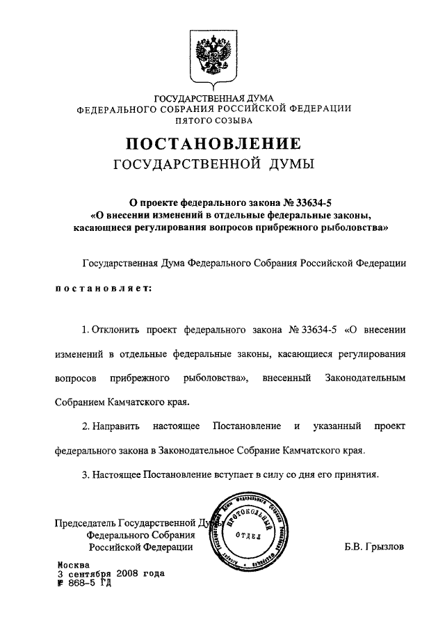 ПОСТАНОВЛЕНИЕ ГД ФС РФ от 03.09.2008 N 868-5 ГД