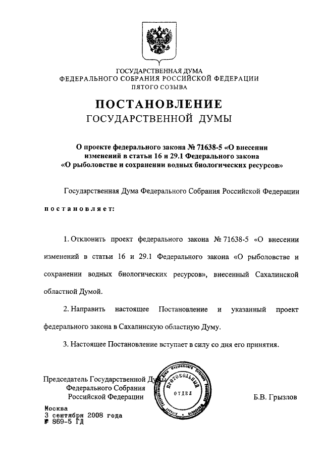 ПОСТАНОВЛЕНИЕ ГД ФС РФ от 03.09.2008 N 869-5 ГД