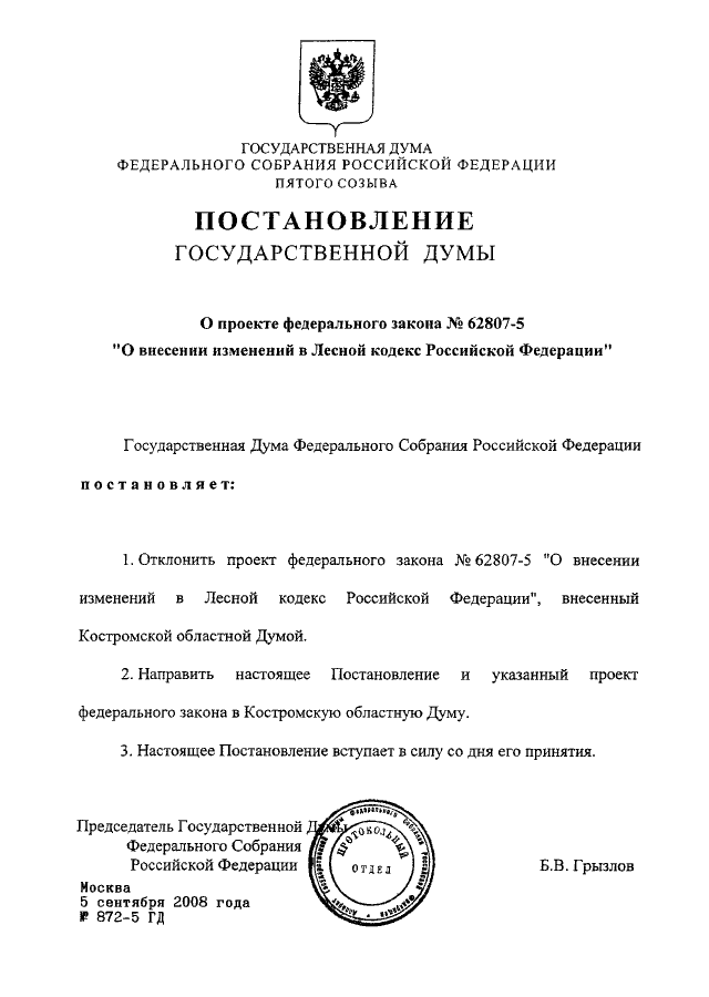 ПОСТАНОВЛЕНИЕ ГД ФС РФ от 05.09.2008 N 872-5 ГД