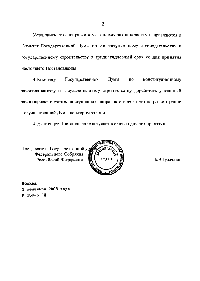 ПОСТАНОВЛЕНИЕ ГД ФС РФ от 03.09.2008 N 856-5 ГД