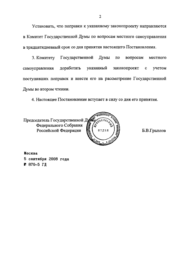 ПОСТАНОВЛЕНИЕ ГД ФС РФ от 05.09.2008 N 870-5 ГД
