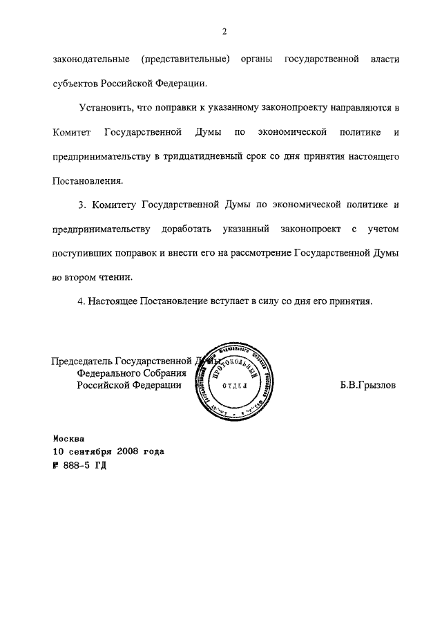 ПОСТАНОВЛЕНИЕ ГД ФС РФ от 10.09.2008 N 888-5 ГД
