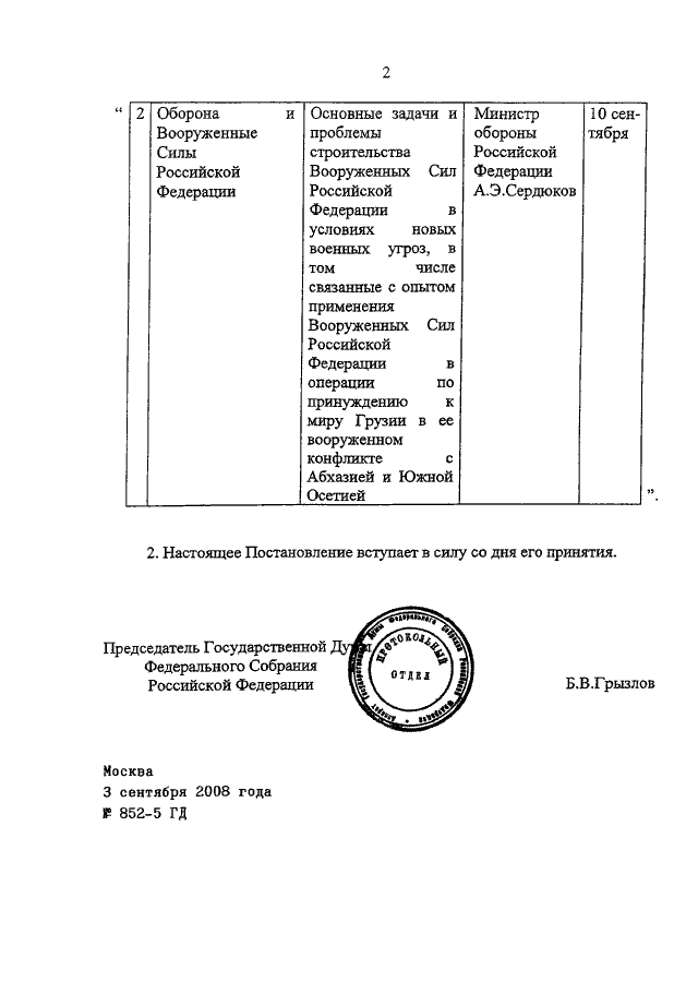 ПОСТАНОВЛЕНИЕ ГД ФС РФ от 03.09.2008 N 852-5 ГД
