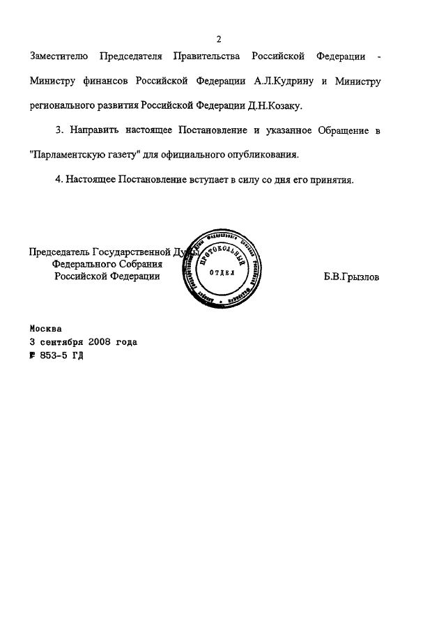 ПОСТАНОВЛЕНИЕ ГД ФС РФ от 03.09.2008 N 853-5 ГД