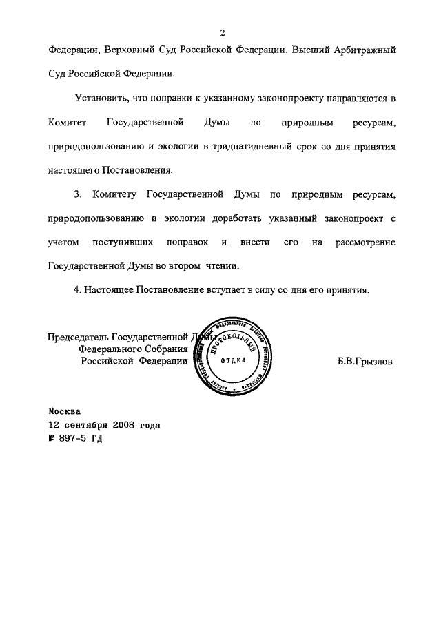 ПОСТАНОВЛЕНИЕ ГД ФС РФ от 12.09.2008 N 897-5 ГД