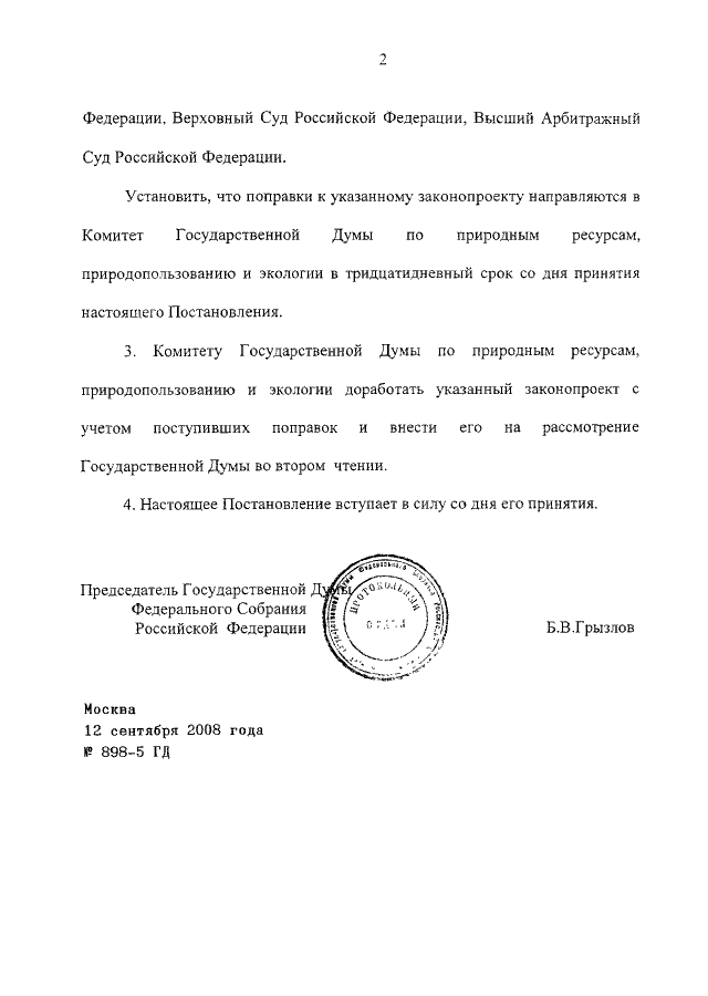 ПОСТАНОВЛЕНИЕ ГД ФС РФ от 12.09.2008 N 898-5 ГД