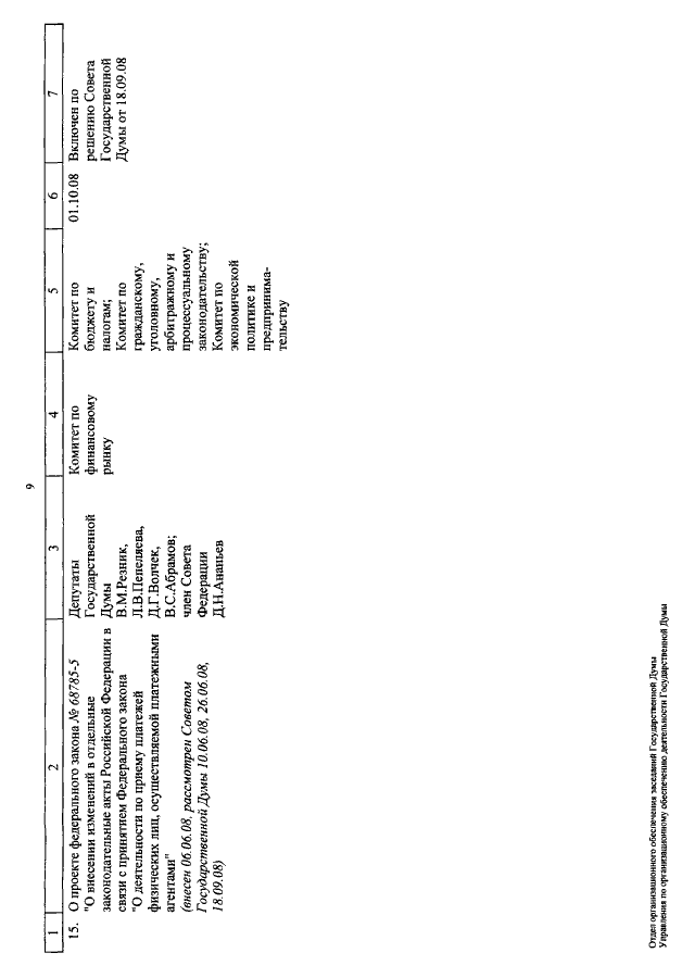 "О КАЛЕНДАРЕ РАССМОТРЕНИЯ ВОПРОСОВ ГОСУДАРСТВЕННОЙ ДУМОЙ С 1 ПО 17 ОКТЯБРЯ 2008 ГОДА"