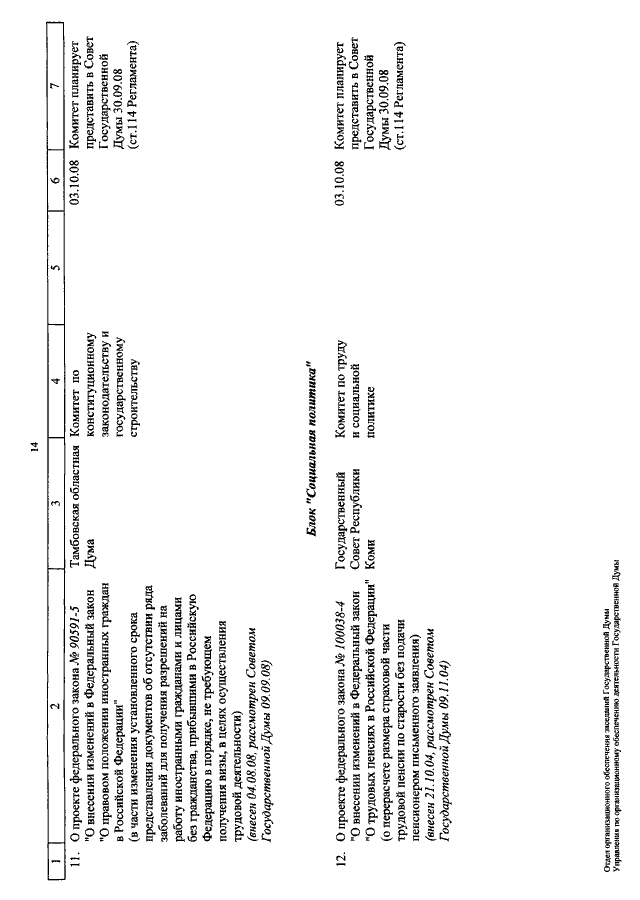 "О КАЛЕНДАРЕ РАССМОТРЕНИЯ ВОПРОСОВ ГОСУДАРСТВЕННОЙ ДУМОЙ С 1 ПО 17 ОКТЯБРЯ 2008 ГОДА"