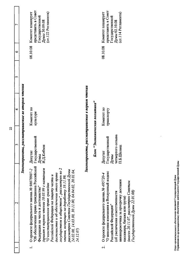 "О КАЛЕНДАРЕ РАССМОТРЕНИЯ ВОПРОСОВ ГОСУДАРСТВЕННОЙ ДУМОЙ С 1 ПО 17 ОКТЯБРЯ 2008 ГОДА"