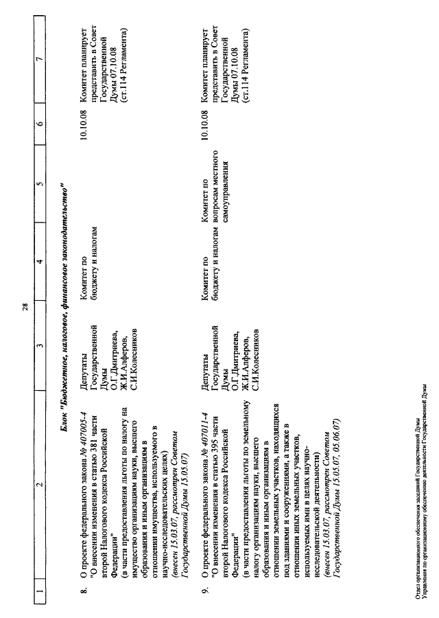 "О КАЛЕНДАРЕ РАССМОТРЕНИЯ ВОПРОСОВ ГОСУДАРСТВЕННОЙ ДУМОЙ С 1 ПО 17 ОКТЯБРЯ 2008 ГОДА"