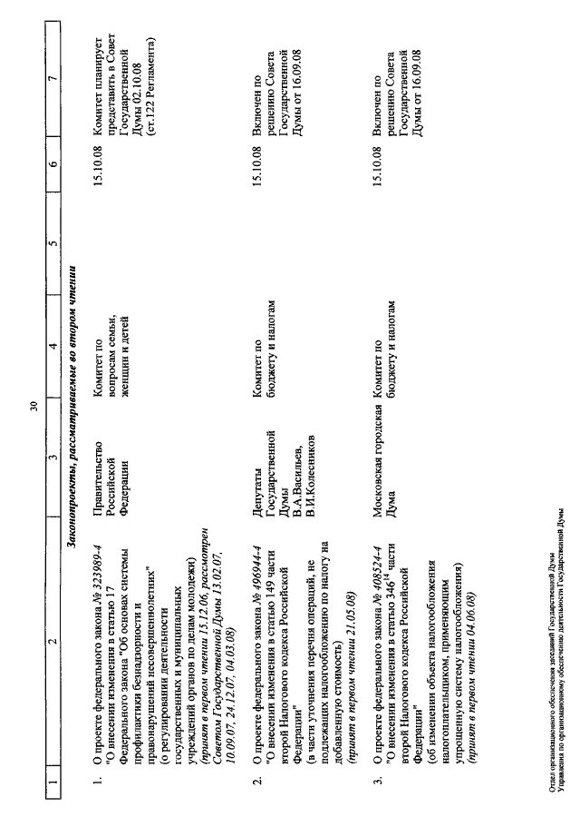 "О КАЛЕНДАРЕ РАССМОТРЕНИЯ ВОПРОСОВ ГОСУДАРСТВЕННОЙ ДУМОЙ С 1 ПО 17 ОКТЯБРЯ 2008 ГОДА"
