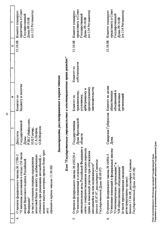 "О КАЛЕНДАРЕ РАССМОТРЕНИЯ ВОПРОСОВ ГОСУДАРСТВЕННОЙ ДУМОЙ С 1 ПО 17 ОКТЯБРЯ 2008 ГОДА"