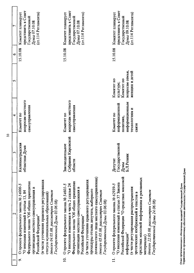 "О КАЛЕНДАРЕ РАССМОТРЕНИЯ ВОПРОСОВ ГОСУДАРСТВЕННОЙ ДУМОЙ С 1 ПО 17 ОКТЯБРЯ 2008 ГОДА"