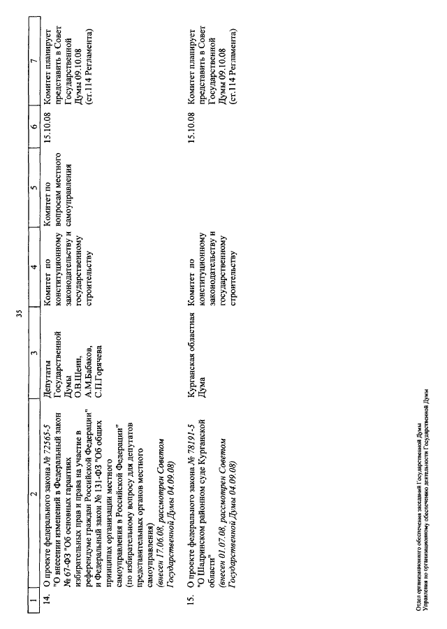 "О КАЛЕНДАРЕ РАССМОТРЕНИЯ ВОПРОСОВ ГОСУДАРСТВЕННОЙ ДУМОЙ С 1 ПО 17 ОКТЯБРЯ 2008 ГОДА"