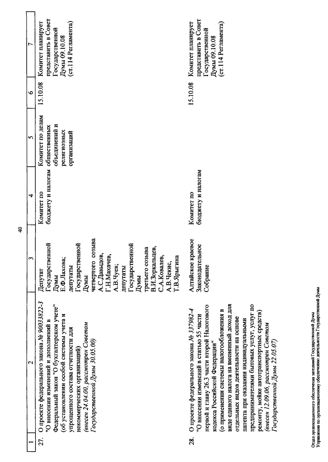 "О КАЛЕНДАРЕ РАССМОТРЕНИЯ ВОПРОСОВ ГОСУДАРСТВЕННОЙ ДУМОЙ С 1 ПО 17 ОКТЯБРЯ 2008 ГОДА"