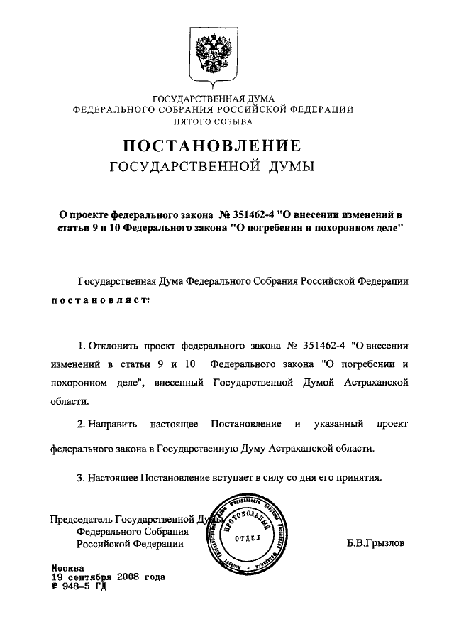 ПОСТАНОВЛЕНИЕ ГД ФС РФ от 19.09.2008 N 948-5 ГД