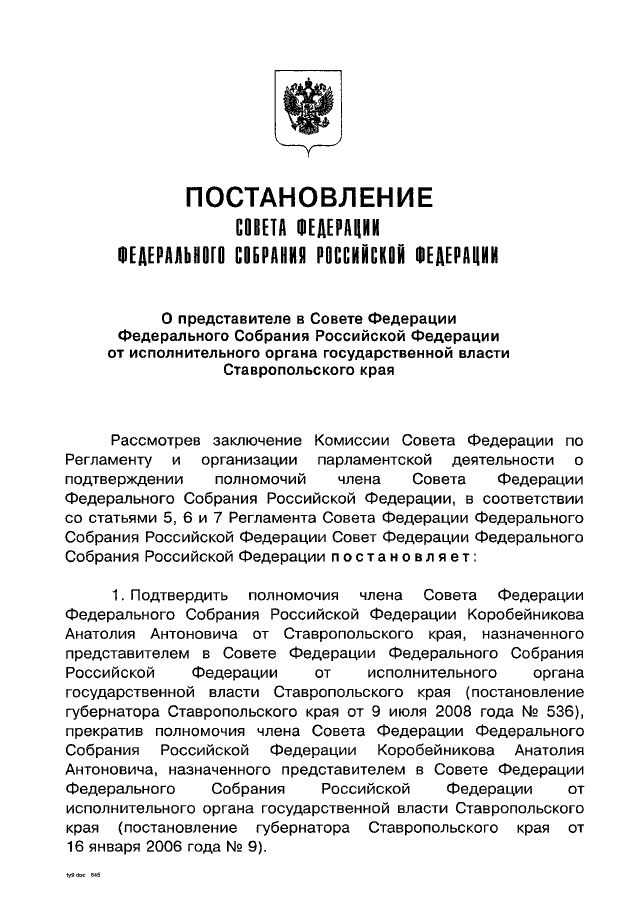 "О ПРЕДСТАВИТЕЛЕ В СОВЕТЕ ФЕДЕРАЦИИ ФЕДЕРАЛЬНОГО СОБРАНИЯ РОССИЙСКОЙ ФЕДЕРАЦИИ ОТ ИСПОЛНИТЕЛЬНОГО ОРГАНА ГОСУДАРСТВЕННОЙ ВЛАСТИ СТАВРОПОЛЬСКОГО КРАЯ"