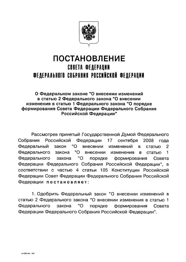ЗАКОНА "О ПОРЯДКЕ ФОРМИРОВАНИЯ СОВЕТА ФЕДЕРАЦИИ ФЕДЕРАЛЬНОГО