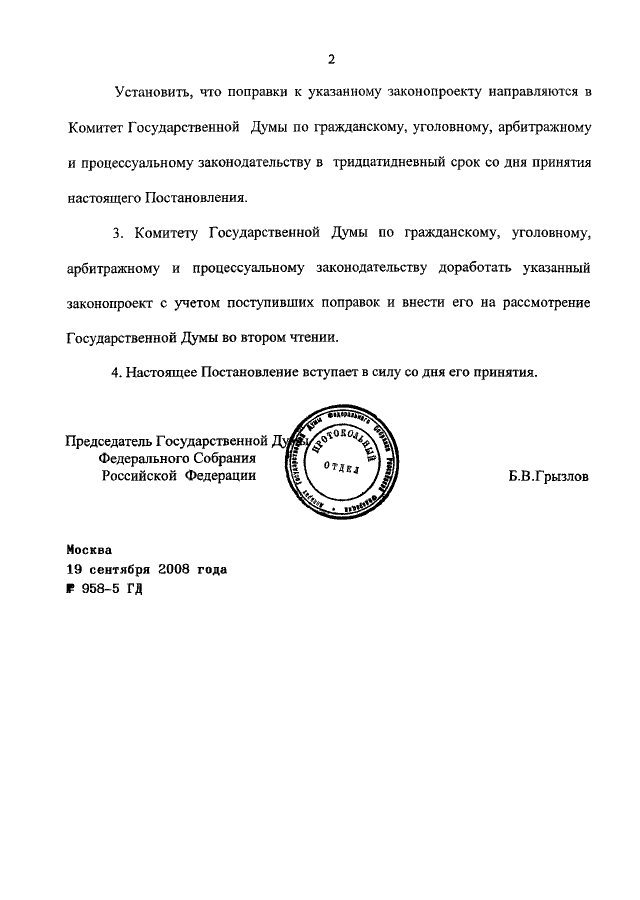 ПОСТАНОВЛЕНИЕ ГД ФС РФ от 19.09.2008 N 958-5 ГД