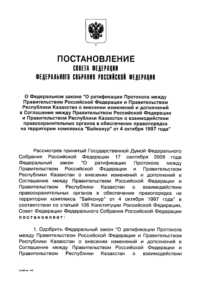 "О ФЕДЕРАЛЬНОМ ЗАКОНЕ "О РАТИФИКАЦИИ ПРОТОКОЛА МЕЖДУ