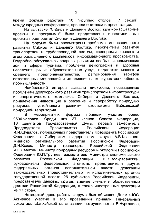 "ОБ ИТОГАХ ПЯТОГО БАЙКАЛЬСКОГО ЭКОНОМИЧЕСКОГО ФОРУМА"