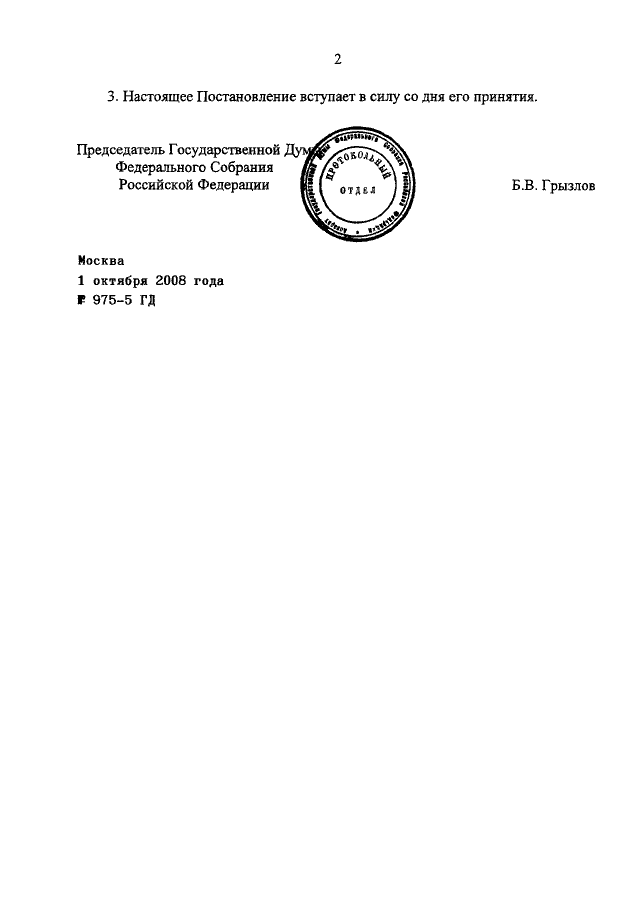 ПОСТАНОВЛЕНИЕ ГД ФС РФ от 01.10.2008 N 975-5 ГД