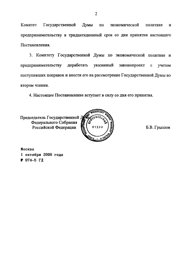 ПОСТАНОВЛЕНИЕ ГД ФС РФ от 01.10.2008 N 974-5 ГД